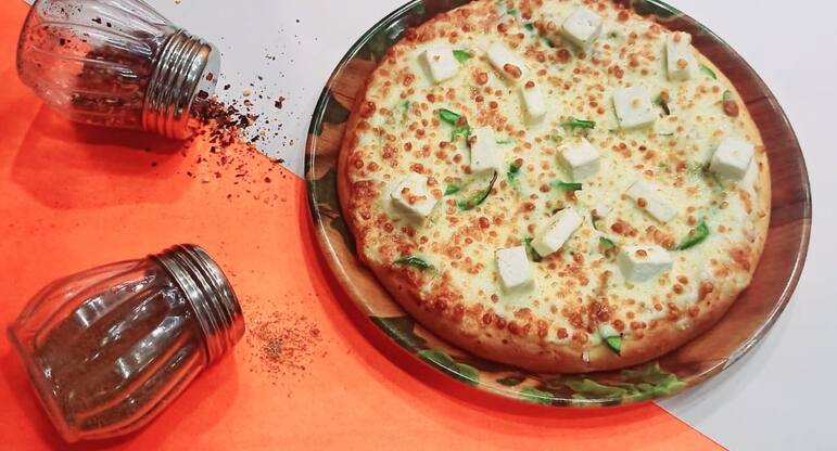 This item is a Bestseller Costs. Pasta Garden Salad Gnocchi Soup Minestrone Soup Chicken Scampi Cream Chicken Soup Pizza. Maharaja Veg Semizza Half Pizza Serves 1 Paneer Tikka Jalapenos Bell Peppers Olives Onion Mozzarella Cheese.